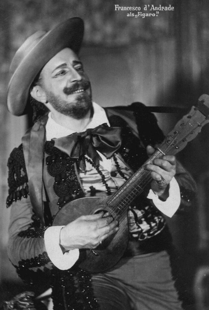 Inspiriert worden war d´Andrade sicherlich von der Karriere seines älteren Bruders Antonio, einem bekannten Tenor, der auch in der Londoner Covent Garden Opera aufgetreten war. In der Familie d´Andrade, versehen mit einem alten portugiesischen Namen, soll es neben Antonio mit Giovanni noch einen weiteren Bruder gegeben haben. Doch mit Gesang hatte dieser wohl nichts im Sinn. Schon 1882, also ein Jahr später, hatte Francisco d`Andrade sein Bühnendebüt in San Remo als Amonasro in der Oper Aida.
