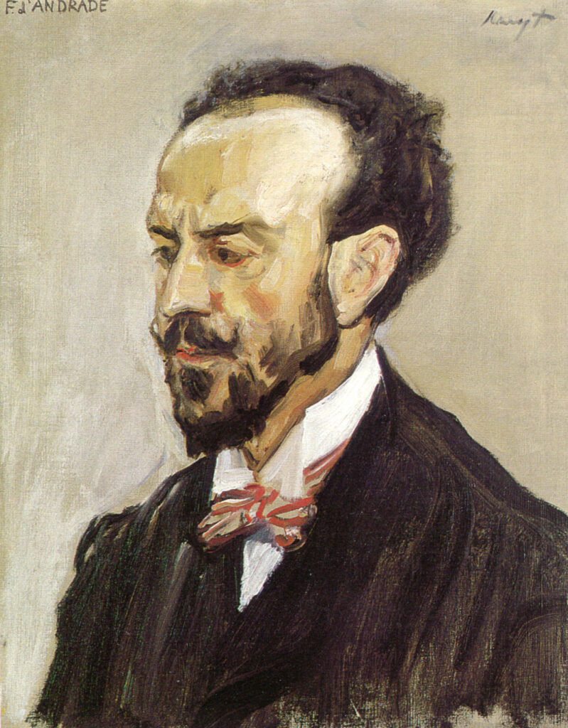 An dieser Stelle soll an ein weiteres Kapitel im Leben des Sängers erinnert werden. Es geht um die langjährige Freundschaft zu dem Maler Max Slevogt (1868-1932) und dessen Frau Antonie, genannt Nini. Max Slevogtn einer der bedeutendsten impressionistischen Maler in Deutschland, porträtierte den Sänger in dieser Zeit einige Male. Das bekannteste Gemälde, dürfte „Das Champagnerlied“, genannt auch „Der weiße d`Andrade“ sein. Es entstand 1902 und befindet sich heute in der Staatsgalerie in Stuttgart.